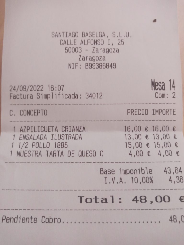 Pequeño inconveniente en la reserva del restaurante 1885 Zaragoza.