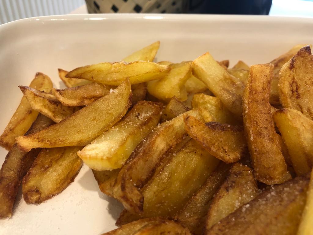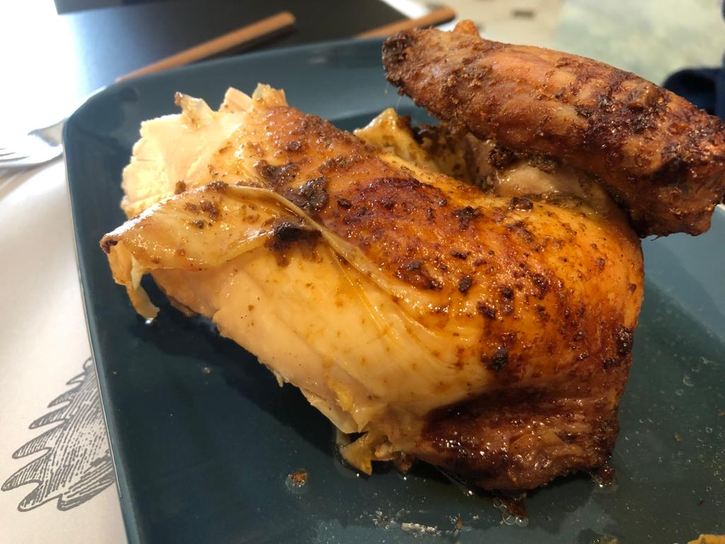 El pollo: bueno, muy especiado, en su punto y acompañado de unas patatas fritas caseras, buena elección. Pero reconozco que a me encanta el pollo asado, aun siendo un plato de poco precio, cuando está bien hecho me parece delicioso.
