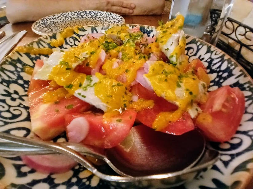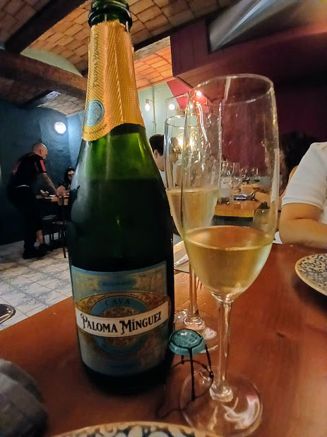 Su sincero sabor pide una paciente degustación, con un buen vino, un cava nos apeteció. Símplmente acompañado de una ensalada, sencilla pero efectiva para desengrasar entre bocado y bocado.