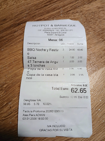 Lo peor del restaurante HotPot de Plaza España Zaragoza: