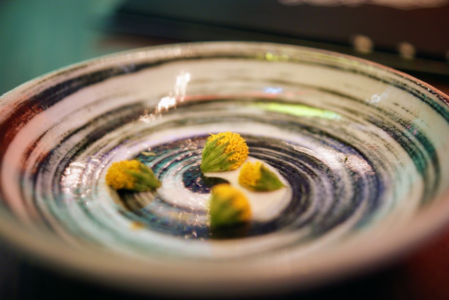 Si lo ha hecho sabrá que da una pequeña descarga eléctrica, continuada, un cosquilleo, más o menos agradable según la carga de la pila…. pues eso va a sentir cuando se coma la flor eléctrica, entre los entrantes y los principales… no asustarse es muy leve, agradable y divertido.