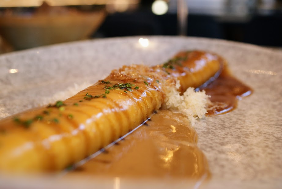 Canelón de pularda: riquísimo y abundante canelón con una ligera reducción de oporto. 16 euros.